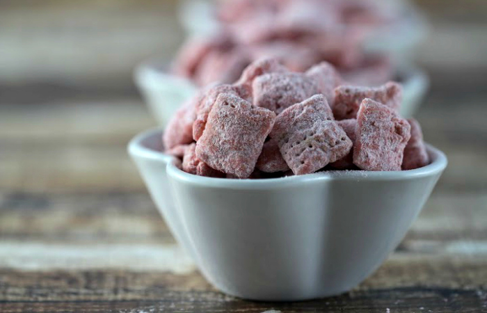 If you’re looking for gluten-free and vegan recipe, then this Pink Strawberry Puppy Chow Recipe by Spabettie is the one for you.