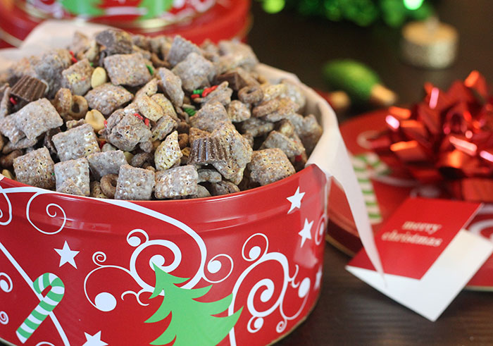 Cutefetti brings us another Christmas option: Chocolate Peanut Butter Muddy Buddies Holiday Snack.