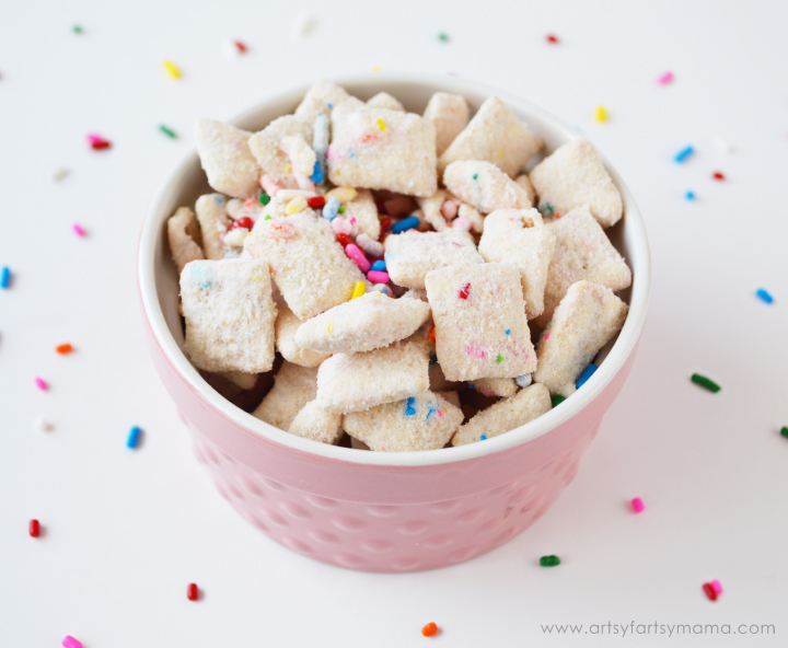 I love this bright and colorful puppy chow. Artsy Fartsy Mama brings us Cupcake Puppy Chow.