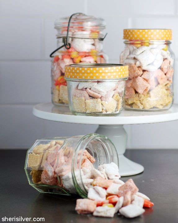 If you love candy corn, you’ll love this Halloween Candy Corn Muddy Buddies by Sheri Silver.