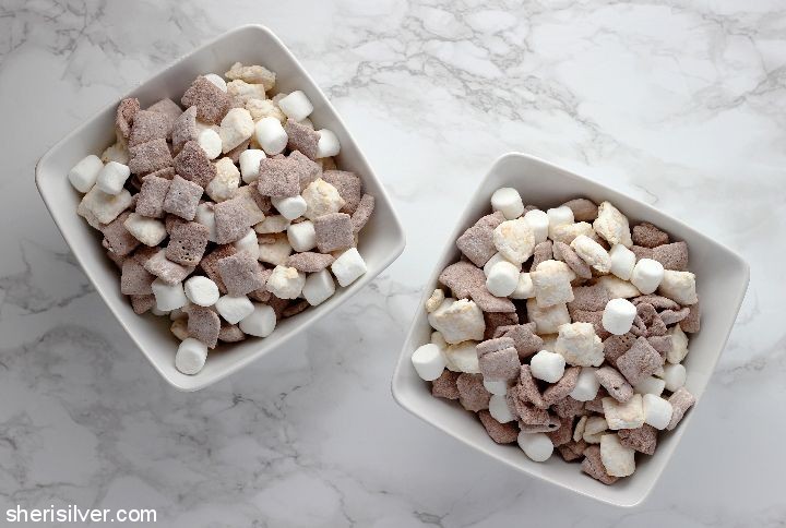 Sheri Silver brings us another fabulous puppy chow. Hot Cocoa Muddy Buddies look great (and I’m sure they taste even better than they look!).