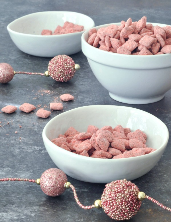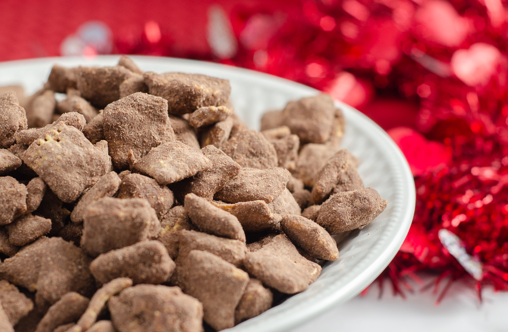 I traditionally make these Red Velvet Muddy Buddies for Valentine’s Day.