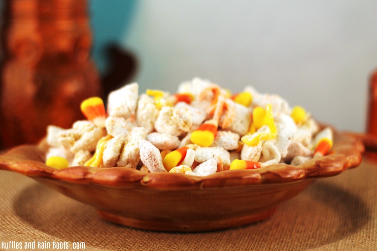 More candy corn! Here is Candy Corn Puppy Chow by Ruffles & Rainboots.