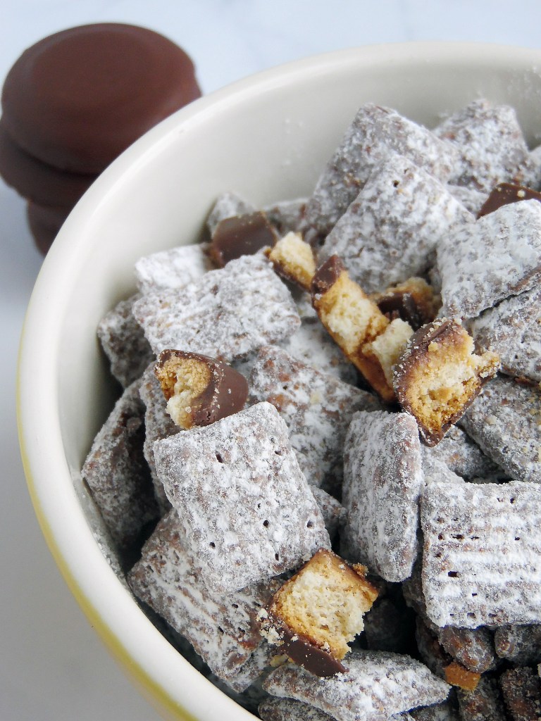 S’mores Muddy Buddies bring the classic flavor of s’mores, but without requiring the campfire.