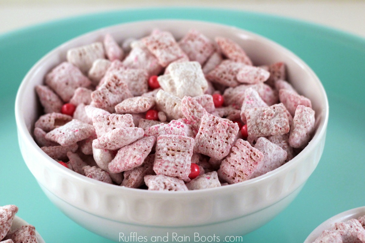 Pink Muddy Buddies brought to you by Ruffles & Rainboots.