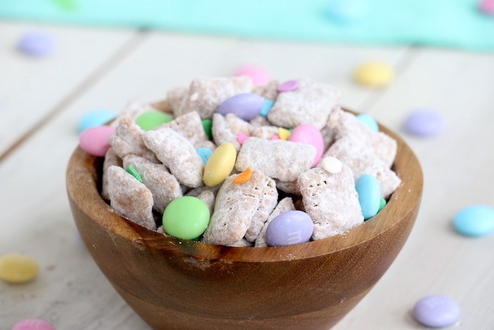 Easter Muddy Buddies are pastel and perfect for Easter.