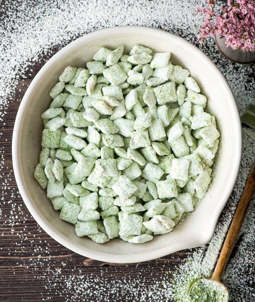 If you’re looking for a recipe for St. Patrick’s Day, try these green White Chocolate Matcha Puppy Chow by JoyFoodSunshine.