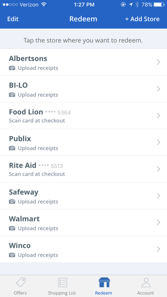 I included Checkout51 last for a couple of reasons: it only comes in app form and the offers are limited. In addition, they change weekly. You have to buy and scan in receipt before the next week starts. On the plus side, there is no activating offers and most of them are good at any store.