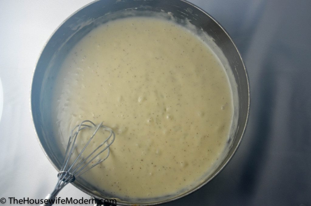 Making the sauce is the only “intensive” part. But it’s worth it. In saucepan, over medium heat, cook onions in butter until soft and translucent. Stir in flour, salt, pepper, and celery seed. (Roux process, but you’re not going to go as thick as you would with some other recipes.). Slowly stir in chicken broth and milk, making sure all ingredients are smoothly combined. Simmer over medium-low heat until thick. Remove from heat & set aside.