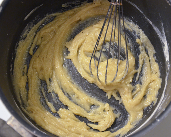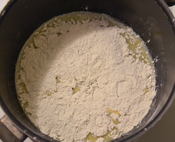 - In a large pot, melt butter over medium-low heat. Sprinkle flour and spice mixture over melted butter. Mix together until completely blended (it will be very thick).