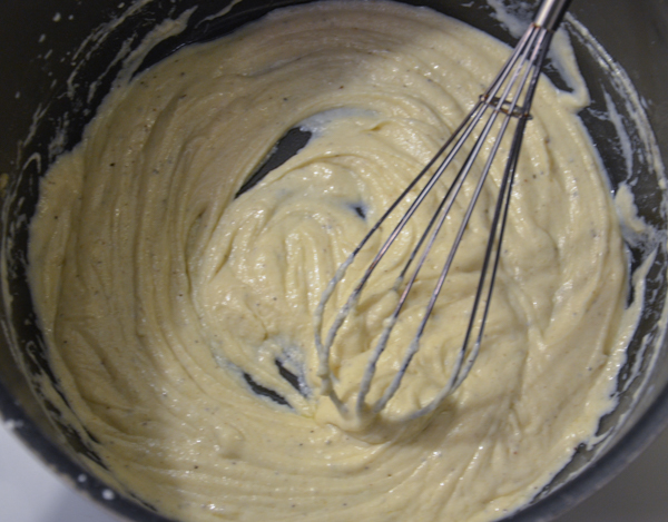 - Continue adding in small intervals, stirring well after each addition. It will thin as you add more liquid.