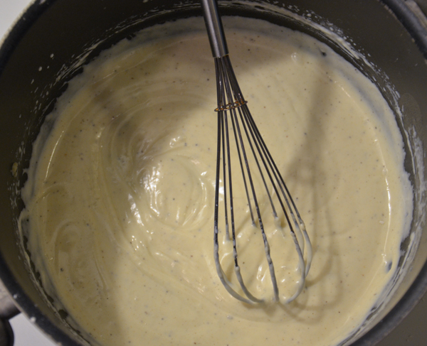 - Slowly add half-and-half in intervals (1/4-1/3 cup at a time), whisking or stirring constantly. After first addition, the mixture will thicken up even more.