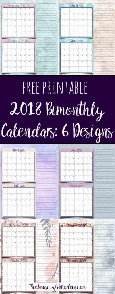 Organization is the key to success. As they say “A failure to plan is a plan to fail.” Last year, I learned that my dear readers (that’s you!) love free printable calendars! So I decided to do them again this year. Below are free printable 2018 bimonthly calendars. There are 6 different designs, so choose whatever works for you!