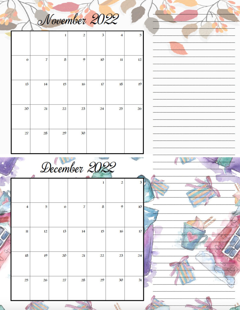 DOWNLOAD JUST BELOW. The file below contains all 12 months of the holiday-themed calendars.