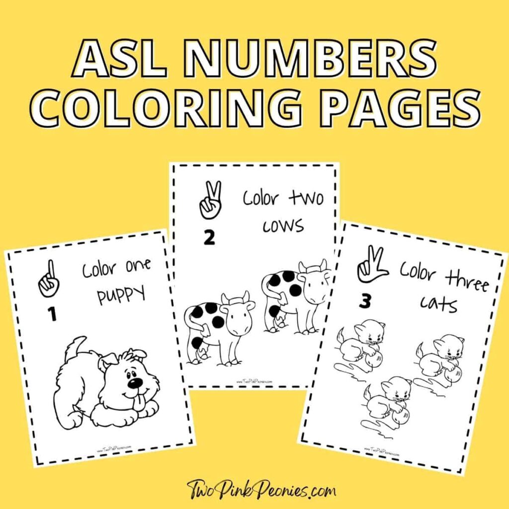 ASL Numbers Coloring pages will help your kids learn the signs for numbers 1-9.