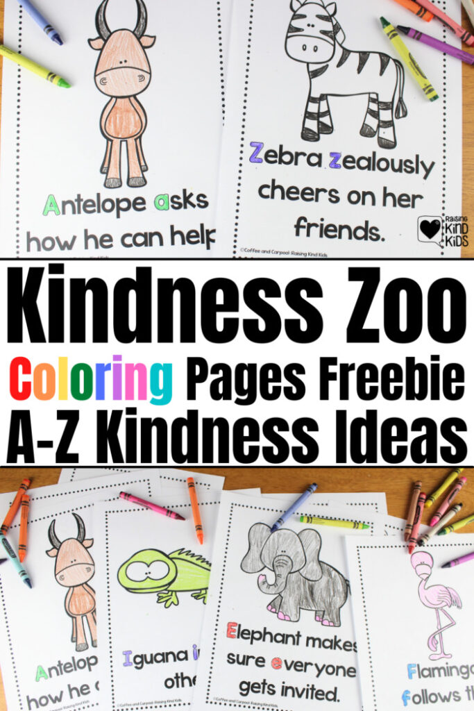 26 Kindness Zoo Alphabet Coloring Pages. I love that you get 26 pages with this! Note: this one requires e-mail sign-up to get the coloring pages (sorry about that).