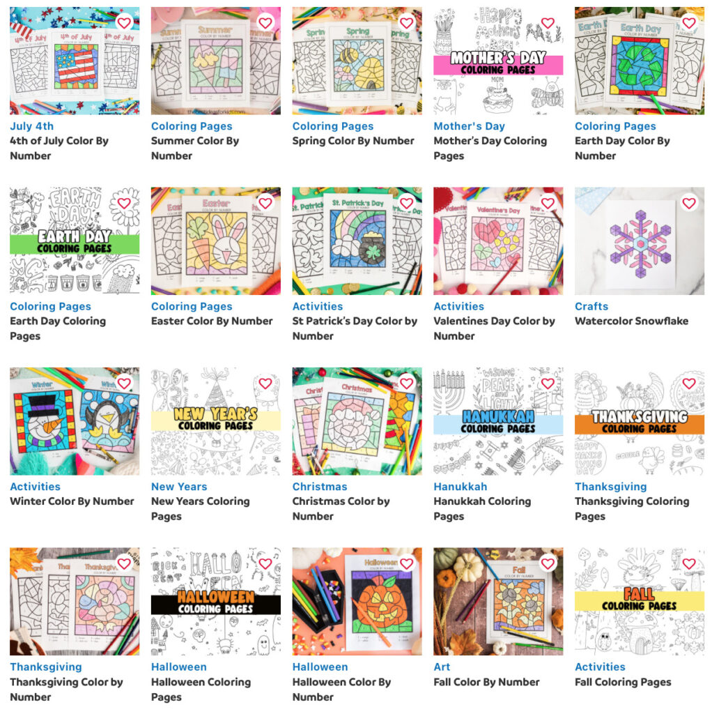 So, tons of color by number coloring pages. Which is great for kids and learning. But it might take a minute to sign up for all of them.