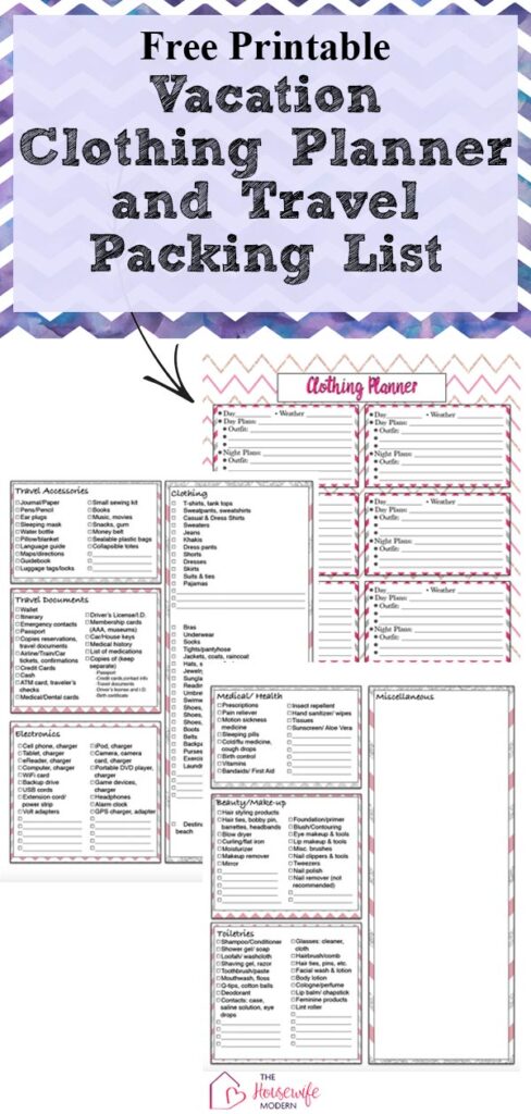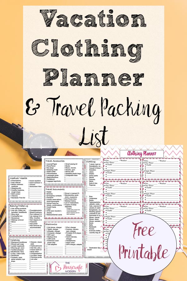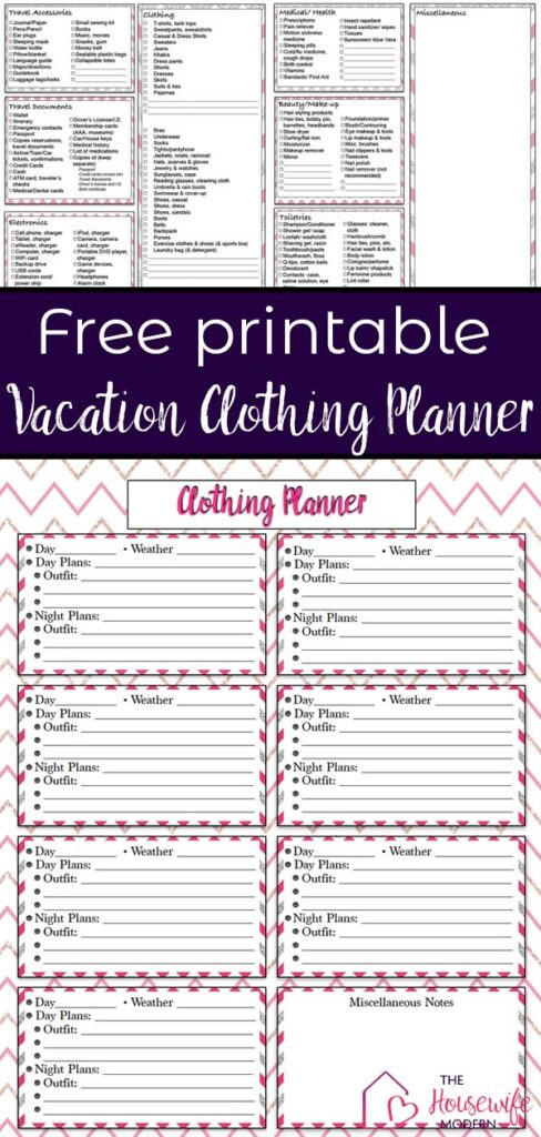Free Printable Vacation Clothing Planner and Travel Packing List. Plan outfits for day & night. Exhaustive list with everything you could possibly need!