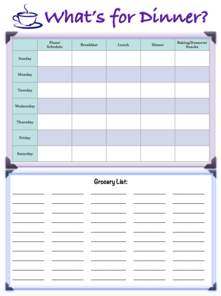~~Update 2017: I’ve learned a LOT designing in the last two years. In fact, if this page wasn’t still getting visits, I would delete these designs entirely. I’ve done some new meal planner & grocery lists, located at: “4 Free Printable Meal Planners/Grocery Lists.” <<click there…it is hyperlinked, despite not showing up underlined.