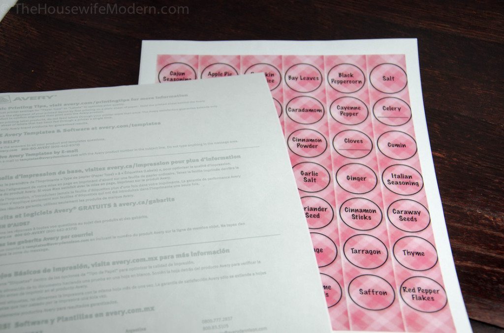 The post for labels for the front of the jar are available here: “Free Printable Spice Jar Labels“.