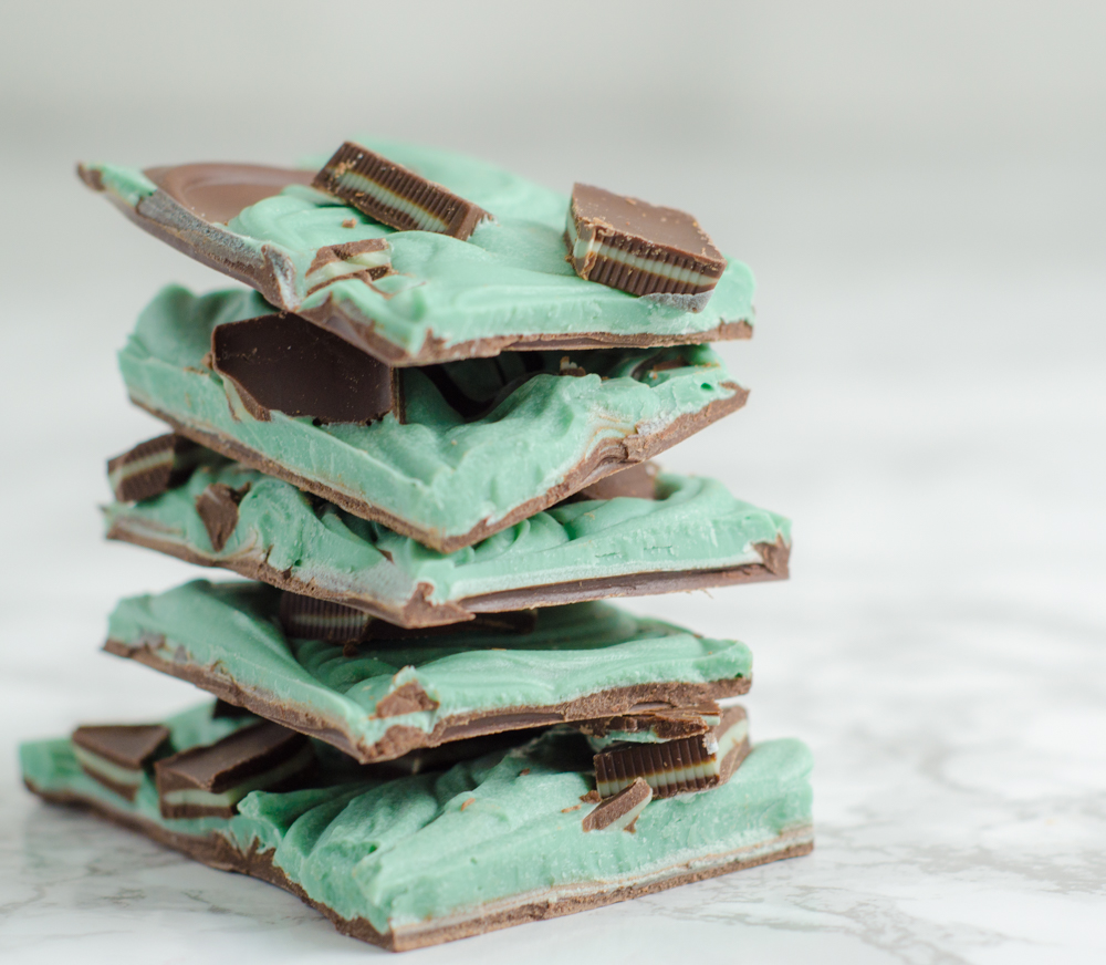 I love mint. Mere words can not describe how much. My husband hates it. Hence me having a “Saint Patrick’s Day & Mint” section on my website…with no mint recipes. But this year I am remedying that. This is just the first of a few mint recipes. And Grasshopper Mint Chocolate Bark was a great place to start. The mint chocolate chips and semi-sweet chocolate go very well together. And I dumped some Andes mints on top because, well, who doesn’t love more mint?