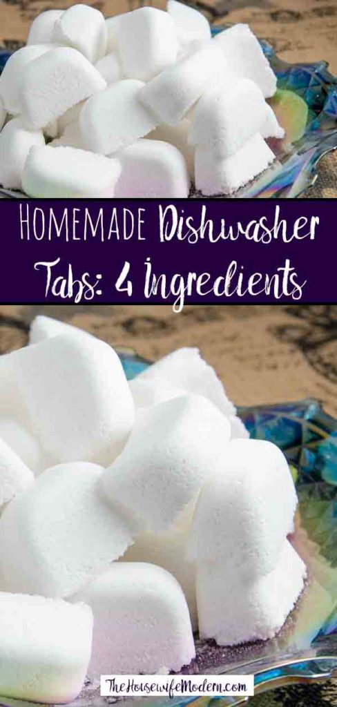 You would not believe the amount of testing and photographs I took in my quest find a homemade dishwasher detergent that was any good. I was very happy with the final winner, though! The best part? It has a tendency to harden…which I leveraged into making dishwasher detergent tabs. No measuring. Just throw it in the dishwasher.