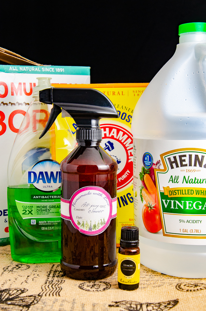 This homemade all-purpose cleaner calls for the following ingredients: