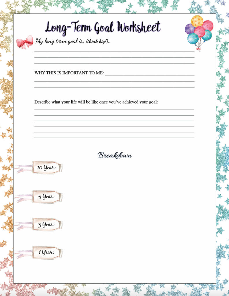 How to achieve your long term goals. Free printable goals worksheet to help you.