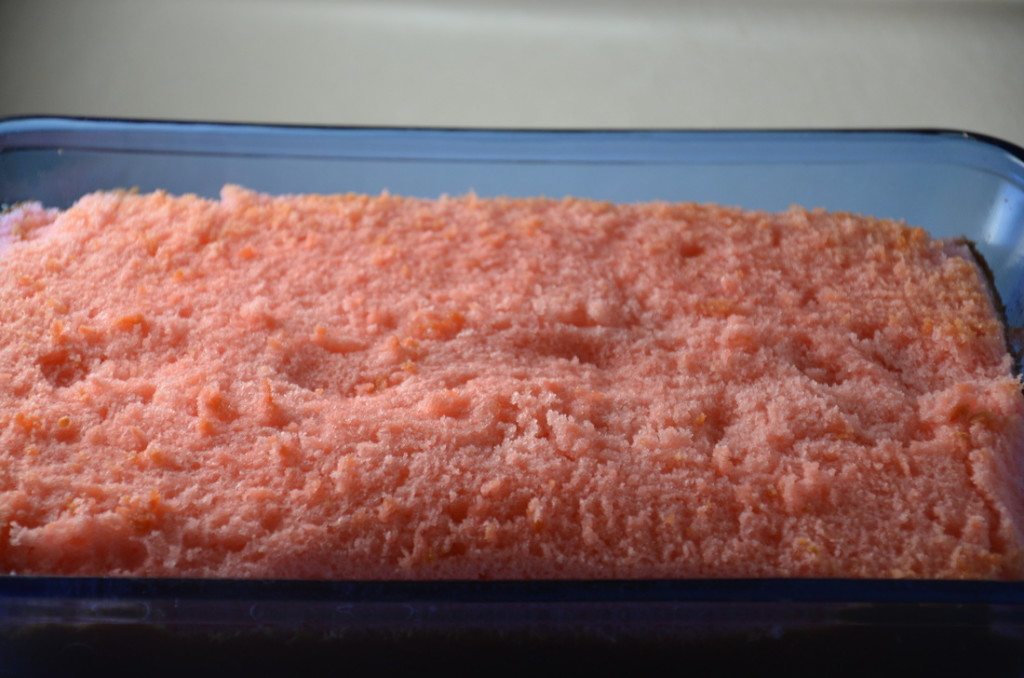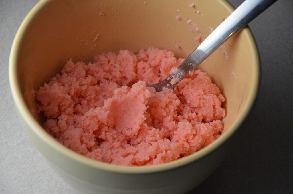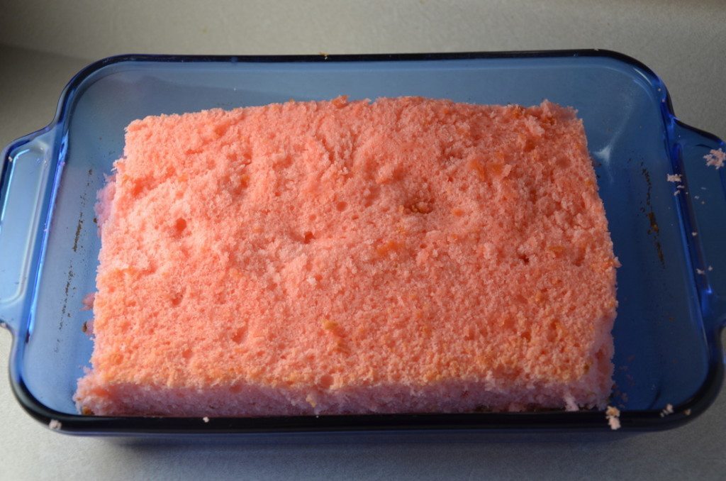 I used boxed strawberry cake mix for this batch. I always, always suggest (whether for cake pops or just a regular cake) using the substitutions recommended in “Make a Boxed Cake Mix Taste Like ‘From Scratch‘”. In this case, we’re going to add 4 eggs, 1/2 c. unsalted butter (melted), and 1 C. milk to the dry cake mix.