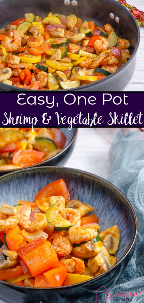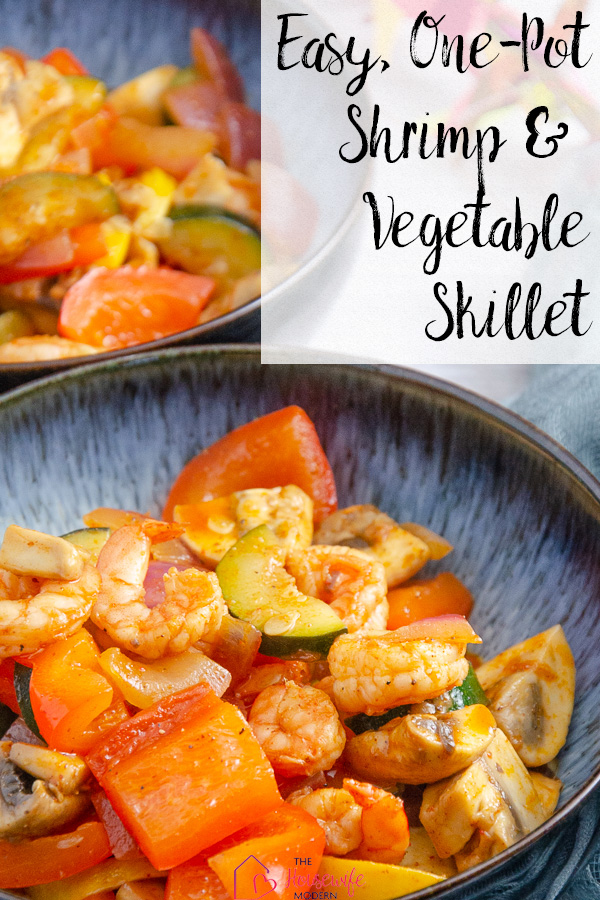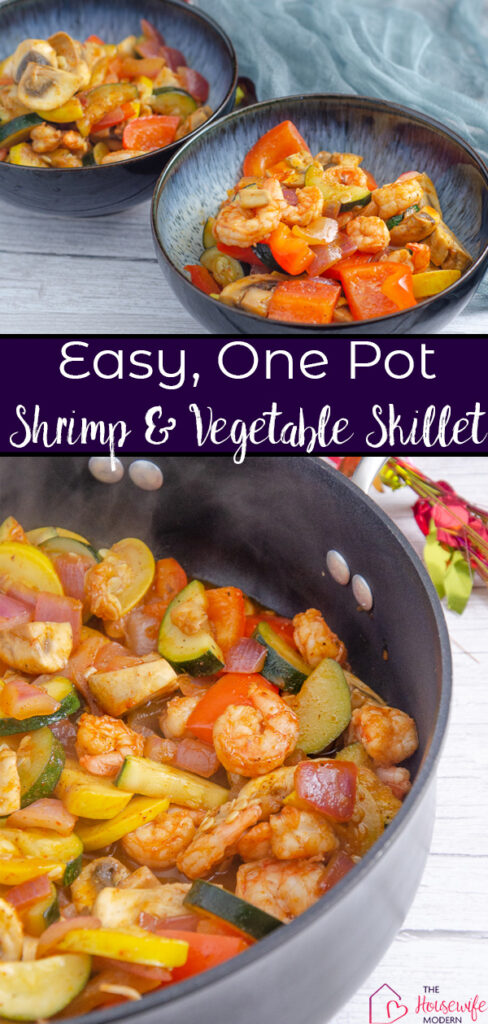 This shrimp and vegetable skillet is an easy, healthy, one-pot meal that is packed with flavor and stuffed with vegetables & healthy protein.