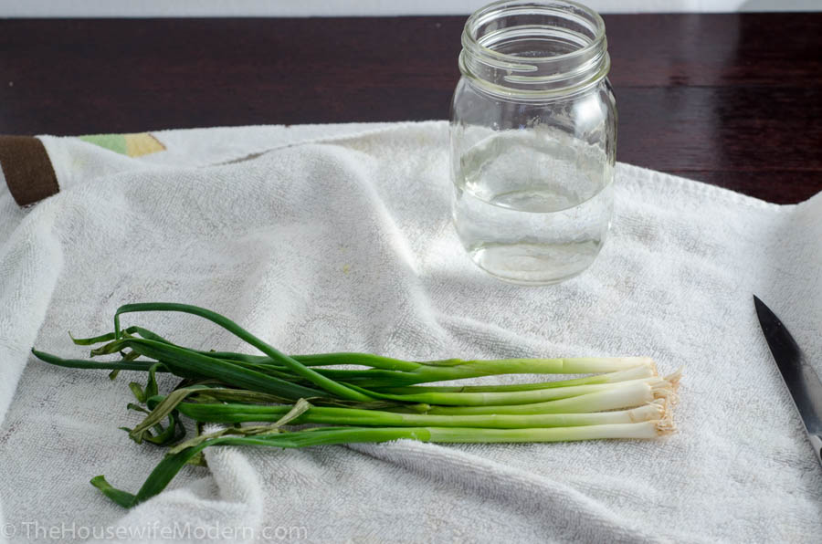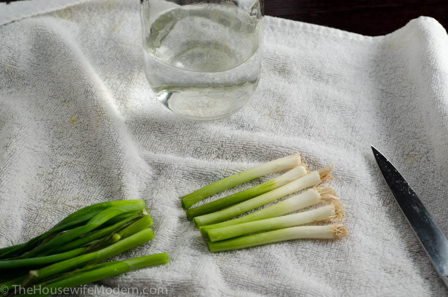 It’s easy to do. Take some green onions. I used the slightly wilted ones I had forgotten about in my fridge.