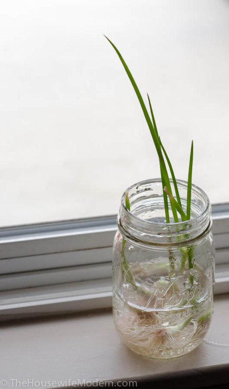 Trim off the roots just a little. Then cut about 1″ above the white part (see picture below).